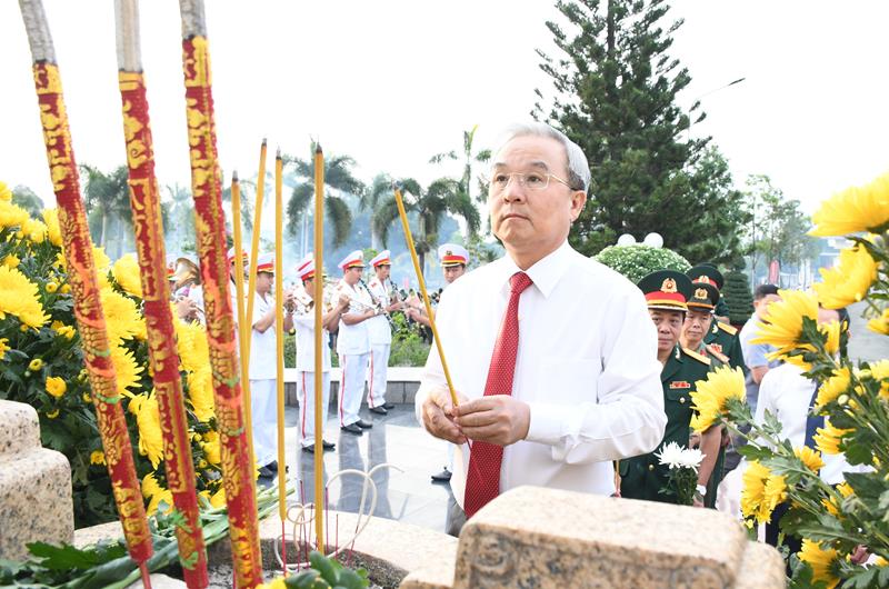 Bí thư Tỉnh ủy Nguyễn Hồng Lĩnh dâng hương tại Đài liệt sĩ nghĩa trang liệt sĩ tỉnh.