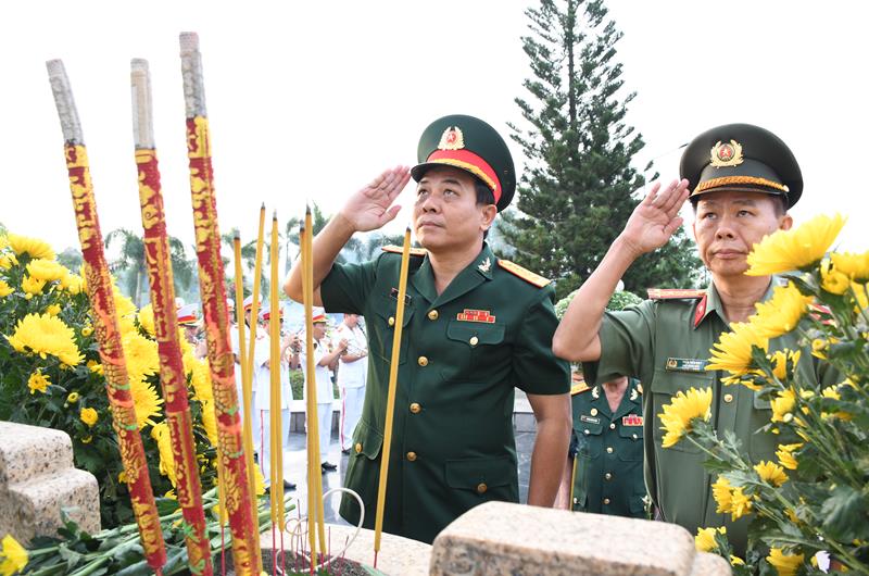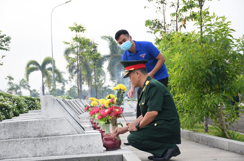 Lực lượng vũ trang và Đoàn thanh niên thắp hương tại nghĩa trang liệt sĩ tỉnh.