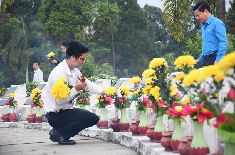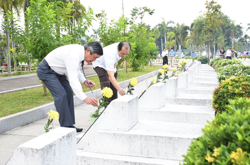 Cán bộ, nhân viên các sở, ngành dâng hương, hoa tại nghĩa trang liệt sĩ tỉnh.