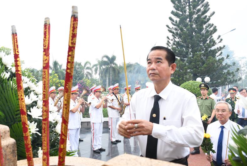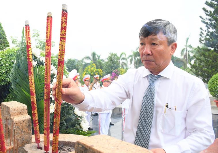 Chủ tịch HĐND tỉnh Thái Bảo dâng hương tại đài tưởng niệm các anh hùng liệt sĩ