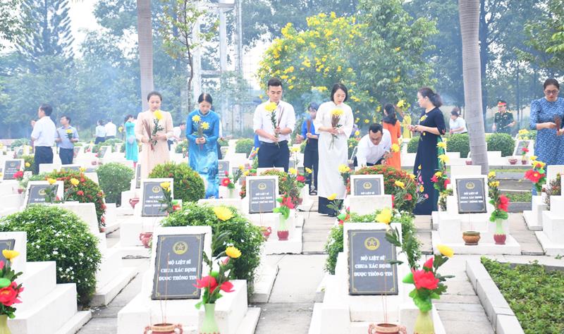 Các đại biểu dự lễ đến thắp hương tại các mộ phần liệt sĩ