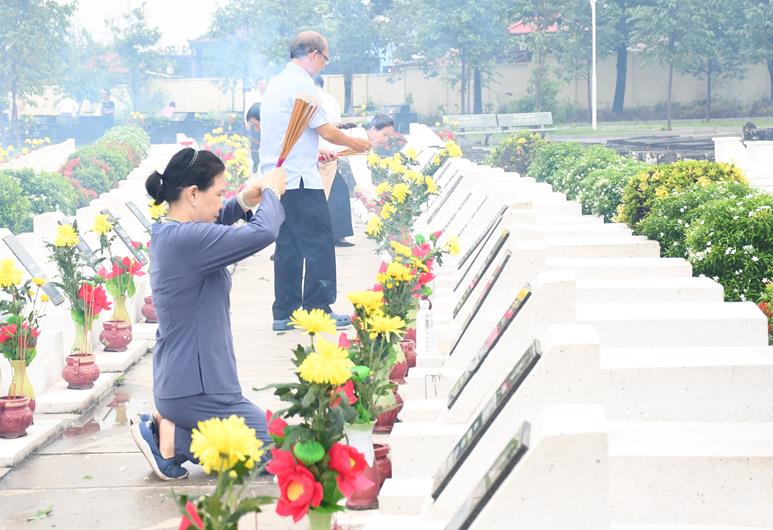 Thân nhân của các liệt sĩ cũng đến thắp hương cho các liệt sĩ vào ngày này.
