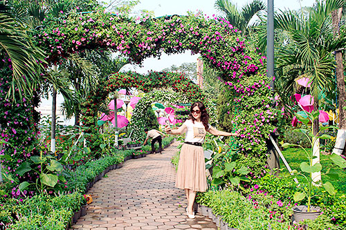 Du khách đến với đường hoa Nguyễn Văn Trị.