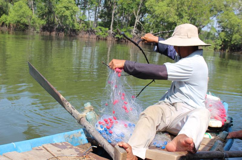 Ngư dân Tư Nên (P.Long Bình Tân, TP.Biên Hòa) đang thả lưới ở các nhánh kênh rạch ở xã Phước An (H.Nhơn Trạch)