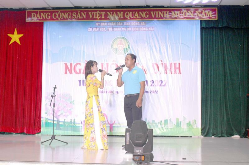 Vợ chồng chị Lê Thị Bảy, Công ty TNHH Changshin Việt Nam (H.Vĩnh Cửu) tham gia biểu diễn văn nghệ tại Ngày hội Gia đình tỉnh Đồng Nai năm 2022