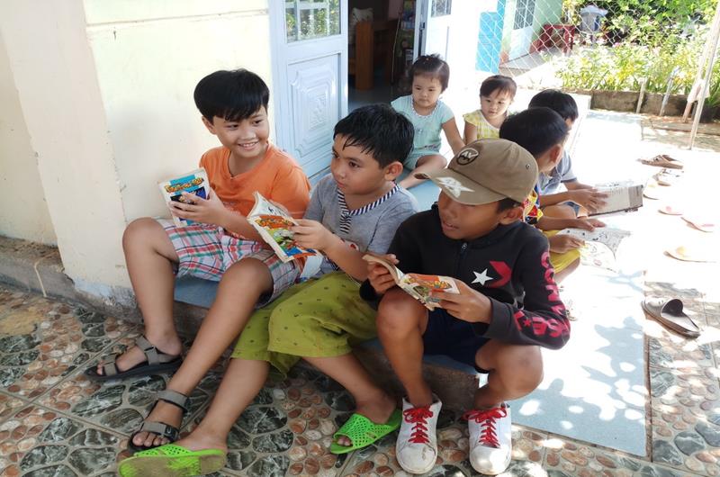 Học sinh đọc sách tại Tủ sách mầm xanh ở P.Bảo Vinh, TP.Long Khánh