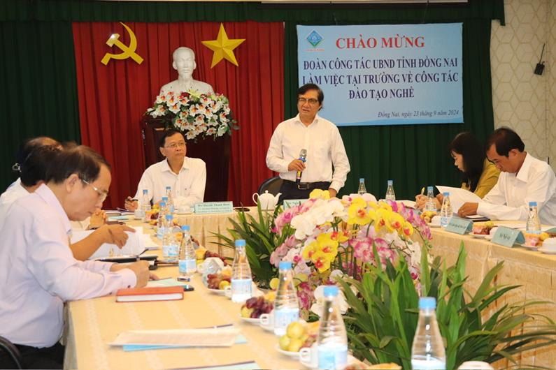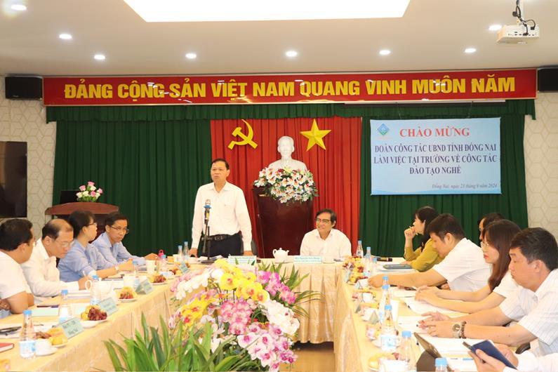 (CTT- Đồng Nai) - Sáng 23-9, Phó Chủ tịch UBND tỉnh Nguyễn Sơn Hùng đã chủ trì buổi làm việc với Trường Cao đẳng Công nghệ cao Đồng Nai và các sở, ngành liên quan về công tác đào tạo nghề, đề án nguồn nhân lực chất lượng cao phục vụ Cảng Hàng không quốc tế (sân bay) Long Thành và các vùng phụ cận.