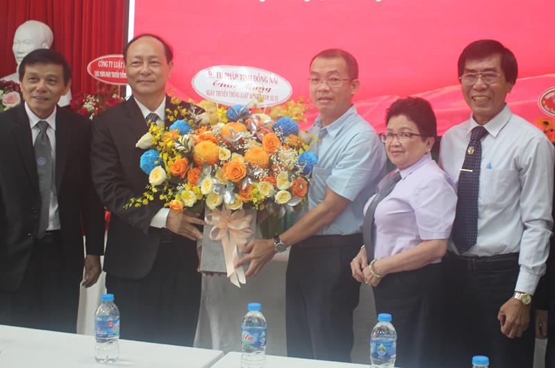 Phó Giám đốc Sở Tư pháp Phan Quang Tuấn tặng hoa chúc mừng Đoàn Luật sư tỉnh