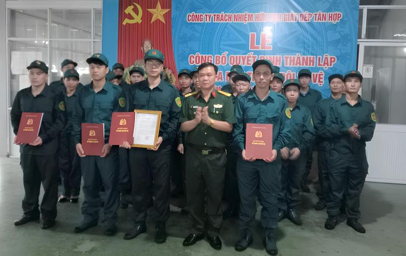 Trung đội tự vệ Công ty TNHH sản xuất giày dép Tân Hợp, huyện Vĩnh Cửu được thành lập với 28 quân số.