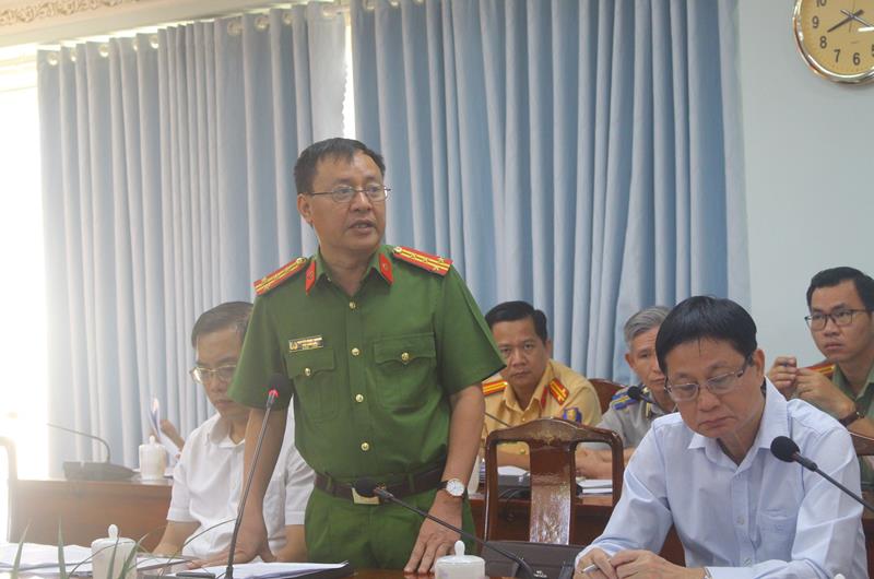 Đại tá Nguyễn Ngọc Quang, Phó Giám đốc Công an tỉnh báo cáo công tác phòng, chống tội phạm trong quý I năm 2023