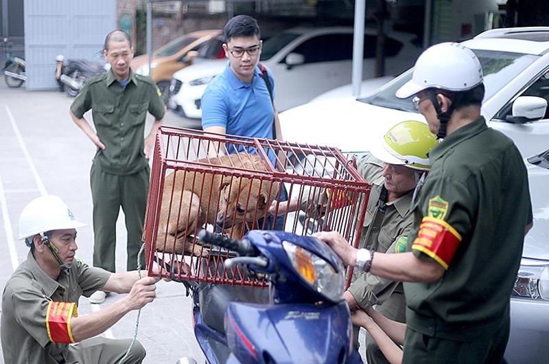 UBND cấp huyện ra quyết định thành lập đội bắt chó chạy rông của địa phương để bắt giữ, xử lý các trường hợp chó, mèo thả rông ngoài đường không có người chăn dắt, không có dây xích, không đeo rọ mõm, chưa tiêm vaccine phòng dại. Tăng cường xử phạt các trường hợp vi phạm trong quản lý nuôi chó, mèo theo quy định.