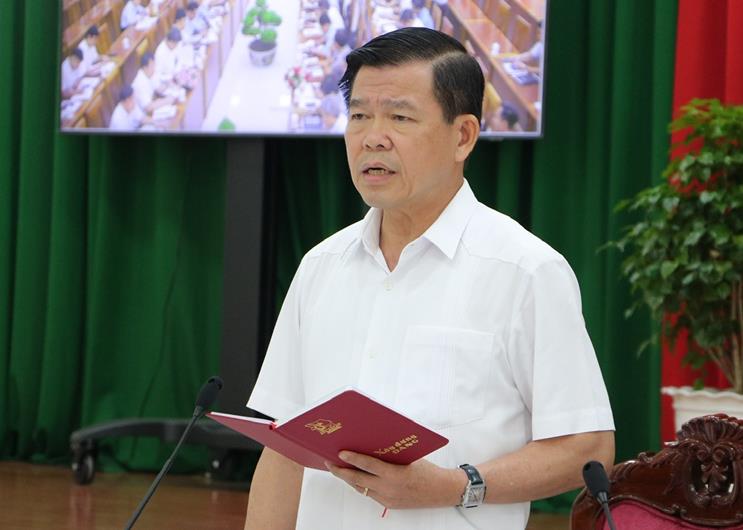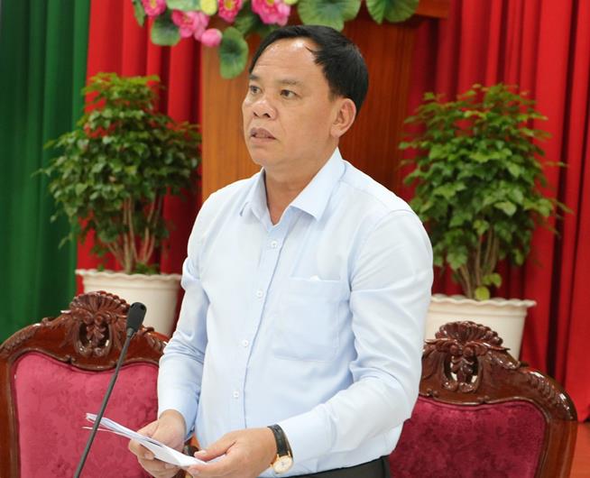 Quyền Chủ tịch UBND tỉnh Võ Tấn Đức phát biểu tại buổi làm việc.