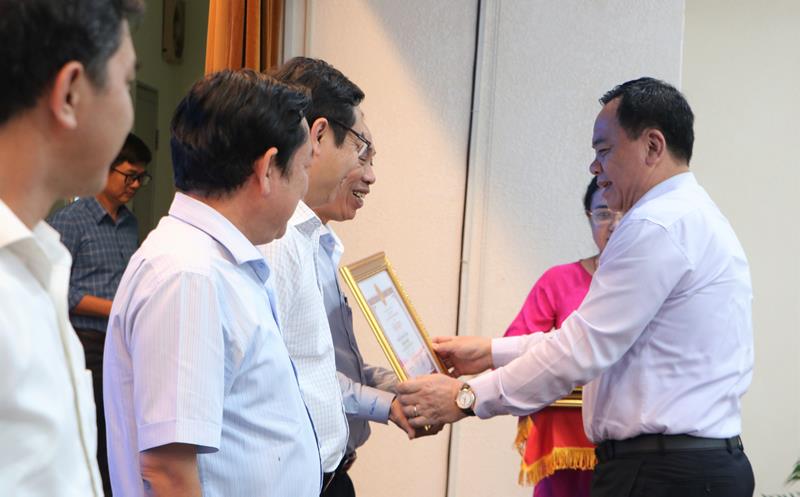 Chủ tịch UBND tỉnh Võ Tấn Đức trao bằng khen của UBND tỉnh cho các tập thể có thành tích tốt trong giải ngân vốn đầu tư công năm 2024.