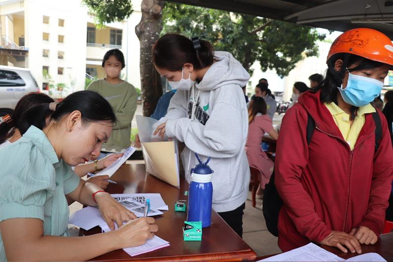 Phụ huynh, học sinh đi nộp hồ sơ tuyển sinh tại Trung tâm GDNN-GDTX H.Trảng Bom