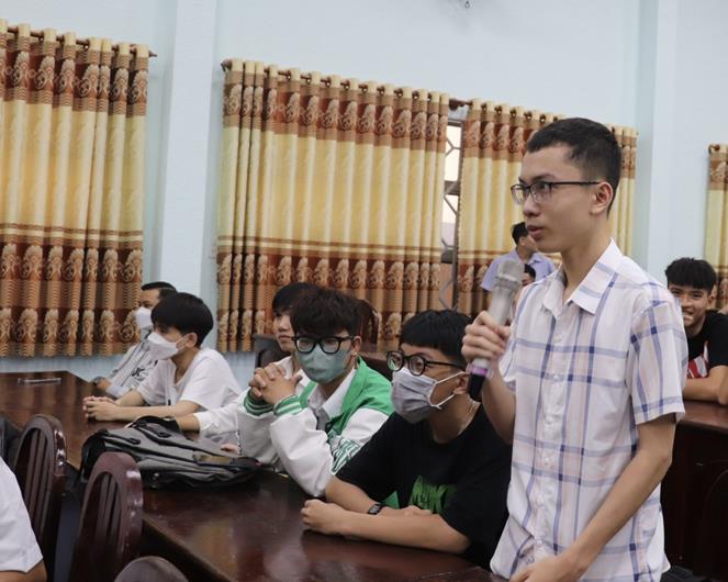 Sinh viên Trường Đại học Đồng Nai trong buổi giao lưu với doanh nghiệp Nhật Bản, một sự kiện trong tuần sinh hoạt công dân đầu khóa do nhà trường tổ chức