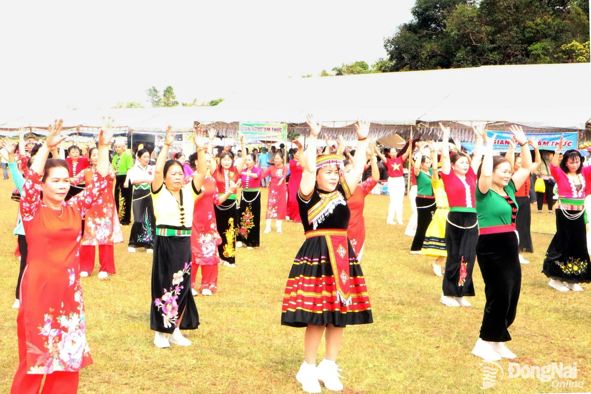 Người dân xã Thọ Sơn đồng diễn dân vũ trong trang phục truyền thống các dân tộc Việt Nam. Ảnh: Văn Truyên