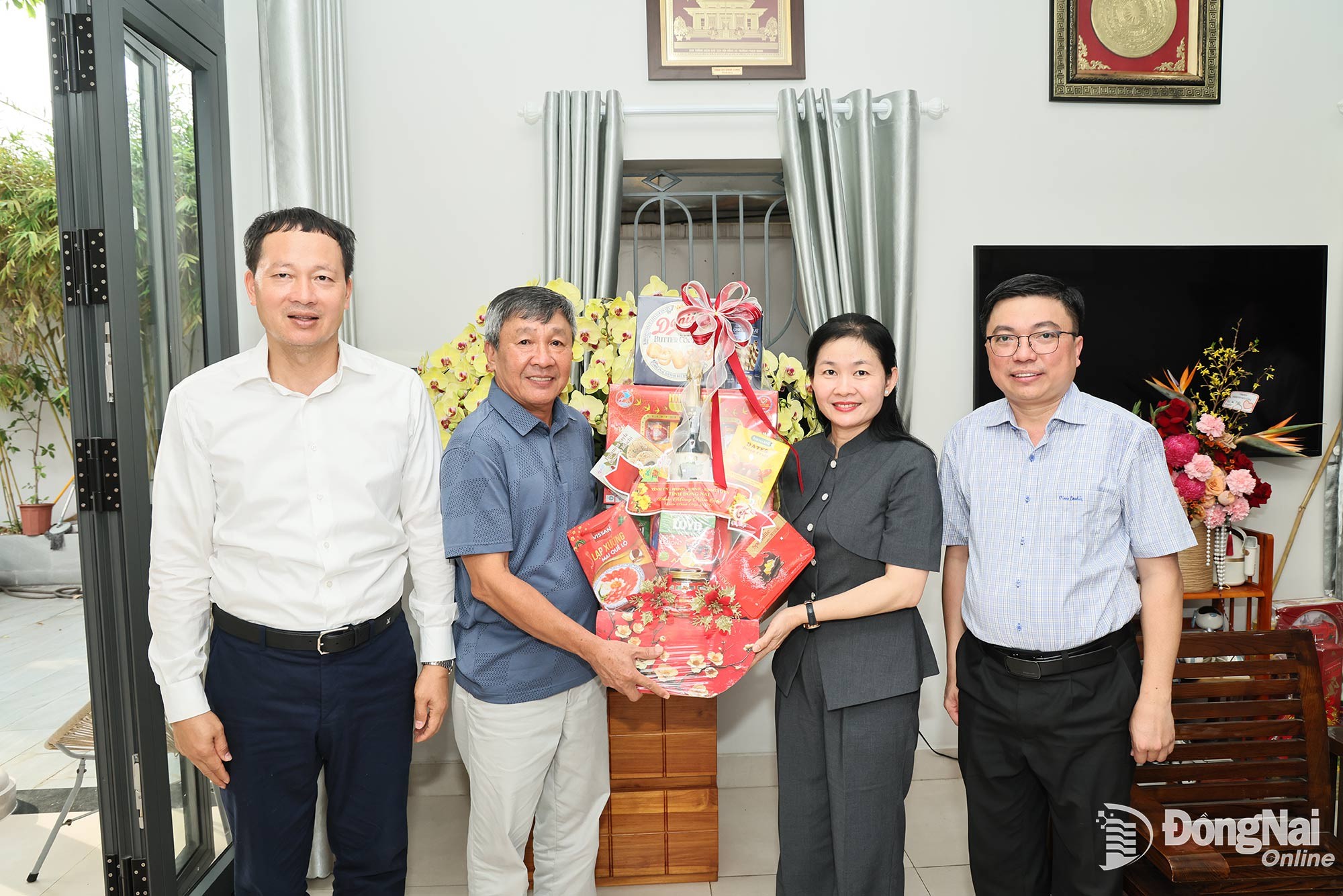 Đồng chí Vũ Hồng Văn, Ủy viên Trung ương Đảng, Bí thư Tỉnh ủy, Trưởng đoàn Đại biểu Quốc hội tỉnh và đồng chí Tôn Ngọc Hạnh, Ủy viên Trung ương Đảng, Phó Bí thư Thường trực Tỉnh ủy, Chủ tịch HĐND tỉnh đến thăm, chúc Tết đồng chí Hồ Thanh Sơn, nguyên Phó Bí thư Thường trực Tỉnh ủy Đồng Nai. Ảnh: Công Nghĩa