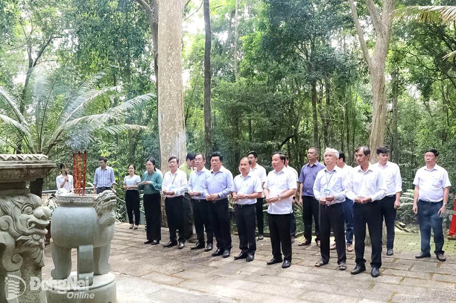 Đoàn công tác dâng hương tại Di tích căn cứ Trung ương cục miền Nam (chiến khu D). Ảnh: Ngọc Liên