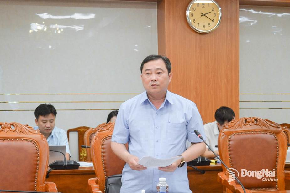 Ủy viên Ban Thường vụ Tỉnh ủy, Phó Chủ tịch UBND tỉnh Đồng Nai Lê Trường Sơn phát biểu tại cuộc họp. Ảnh: Phương Hằng