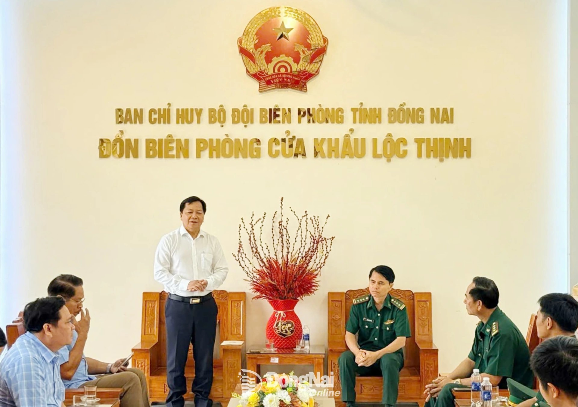 Đồng chí Trần Văn Mi, Tỉnh ủy viên, Phó Chủ tịch HĐND tỉnh Đồng Nai phát biểu trong buổi thăm, kiểm tra và tặng quà chúc Tết Đồn biên phòng Cửa khẩu Lộc Thịnh. Ảnh: ĐVCC