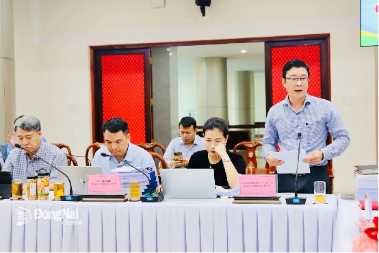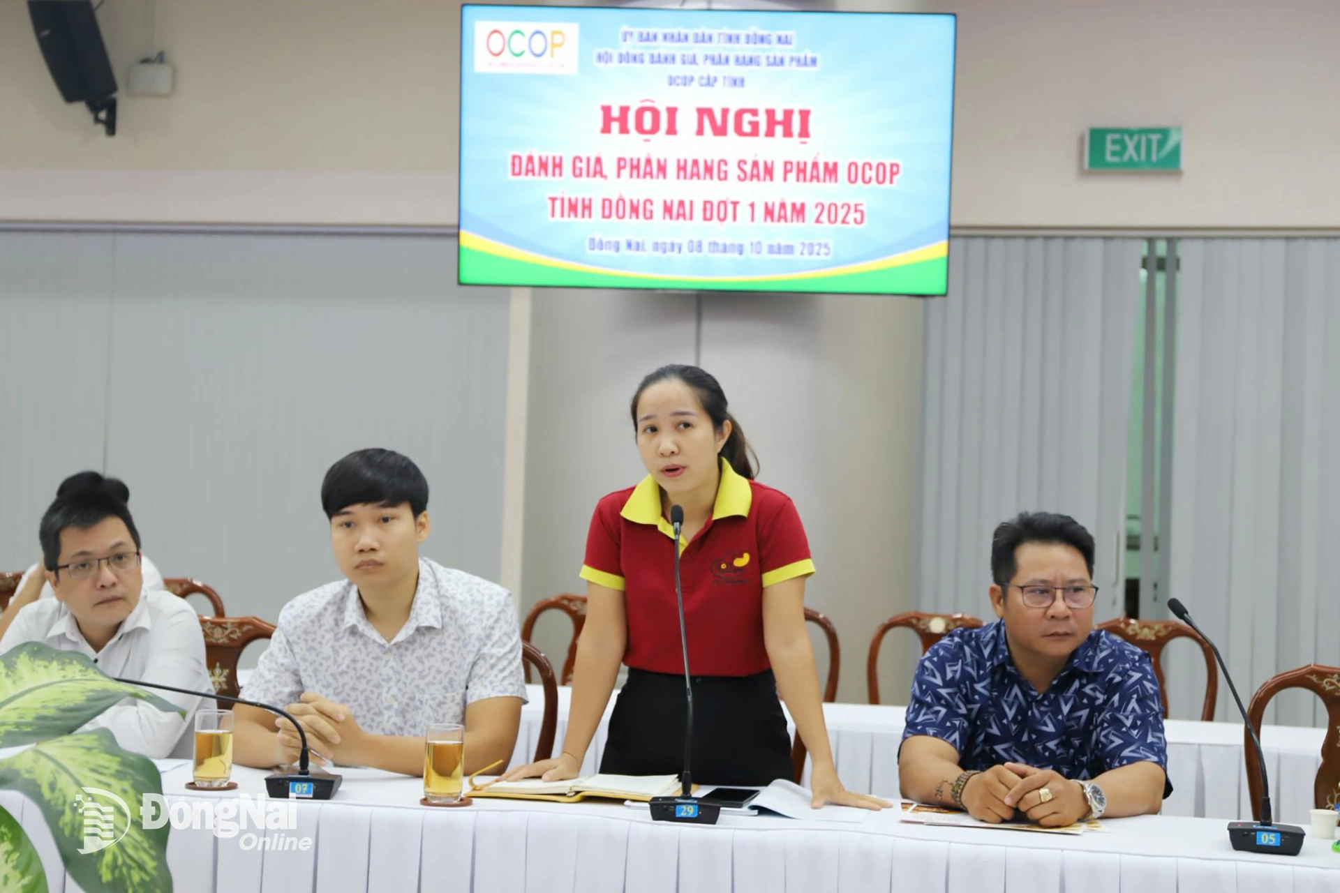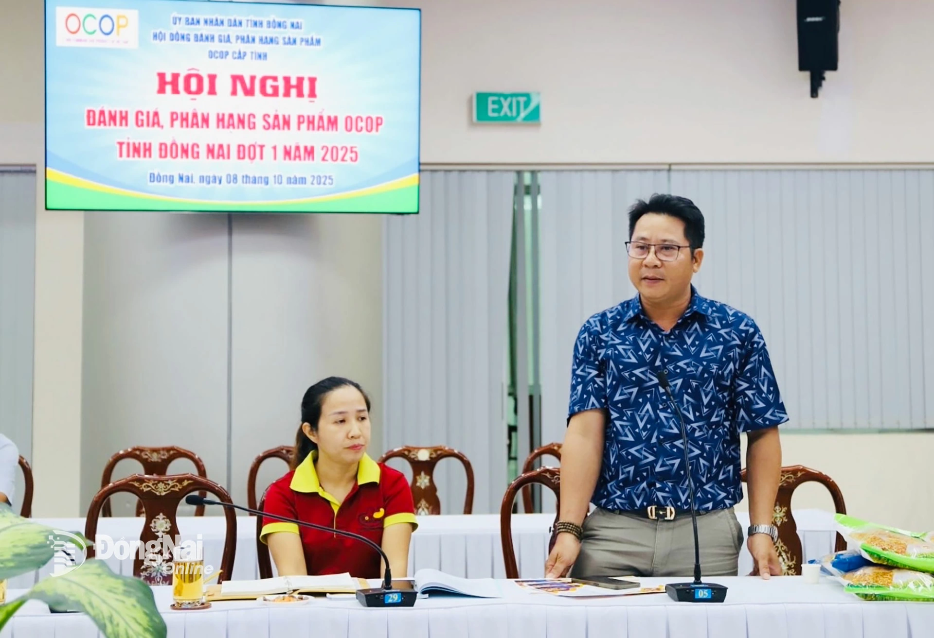 | Đại diện Sở Nông nghiệp và Môi trường báo cáo kết quả thẩm định các sản phẩm OCOP tỉnh Đồng Nai đợt 1-2025. Ảnh: B.Nguyên |