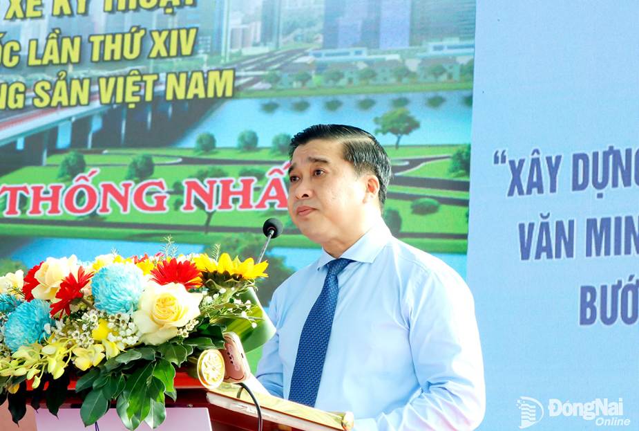 Tỉnh ủy viên, Phó Chủ tịch UBND tỉnh Đồng Nai Hồ Văn Hà phát biểu tại buổi lễ. Ảnh: Vương Thế