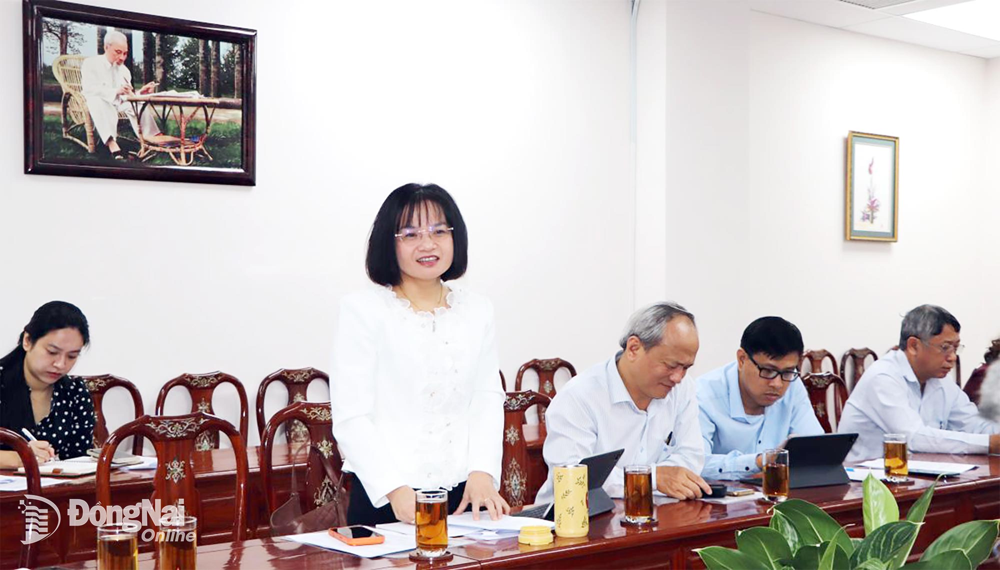 | Tỉnh ủy viên, Giám đốc Sở Tài chính tỉnh Đồng Nai Trương Thị Hương Bình phát biểu tại buổi giao ban. Ảnh: Ngọc Liên |