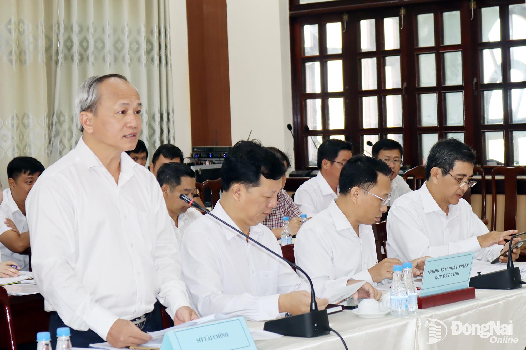 | Ông Trần Anh Tú, Phó Giám đốc Sở Tài chính tỉnh Đồng Nai báo cáo tại buổi làm việc. Ảnh: Hoàng Lộc |