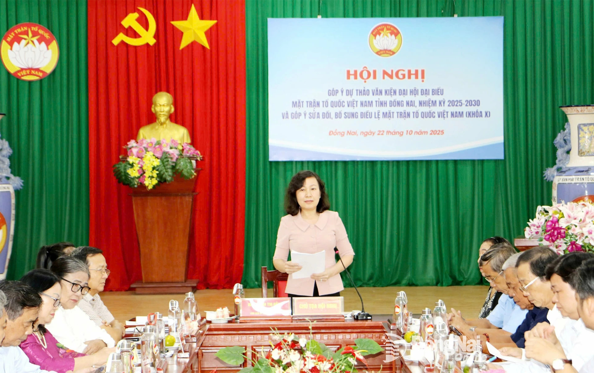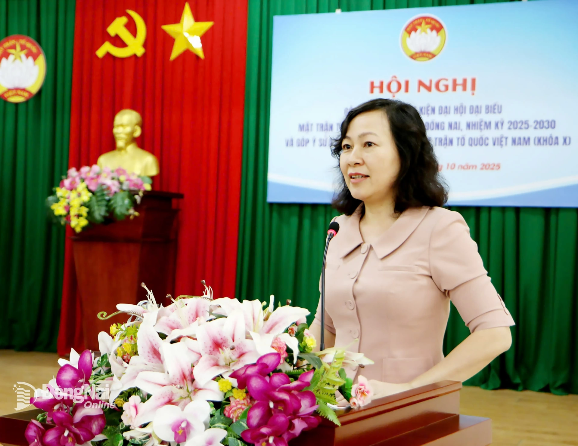 Theo đồng chí Huỳnh Thị Hằng, Đại hội đại biểu MTTQ Việt Nam tỉnh Đồng Nai lần thứ I, nhiệm kỳ 2025-2030 sẽ diễn ra trong 2 ngày 6 và 7-11.