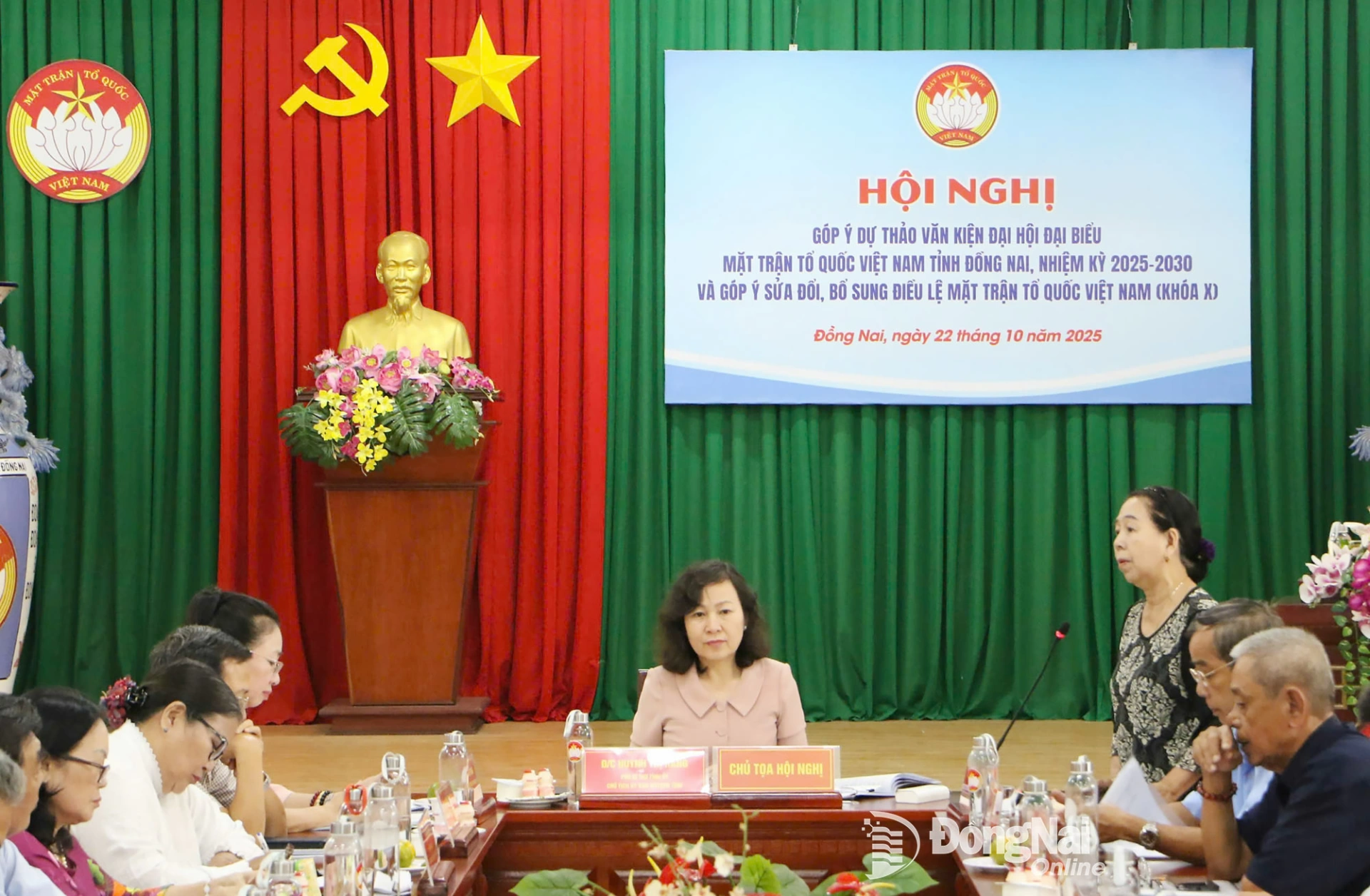 Trên cơ sở đó, Ban Thường trực Ủy ban MTTQ Việt Nam tỉnh Đồng Nai mong muốn nguyên Chủ tịch, nguyên Phó Chủ tịch Ủy ban MTTQ Việt Nam tỉnh Đồng Nai (cũ) và Bình Phước (cũ) qua các thời kỳ, nhân sĩ trí thức tiêu biểu tiếp tục đóng góp đối với dự thảo văn kiện trực tiếp tại hội nghị hoặc bằng văn bản về Văn phòng cơ quan Ủy ban MTTQ Việt Nam tỉnh Đồng Nai.