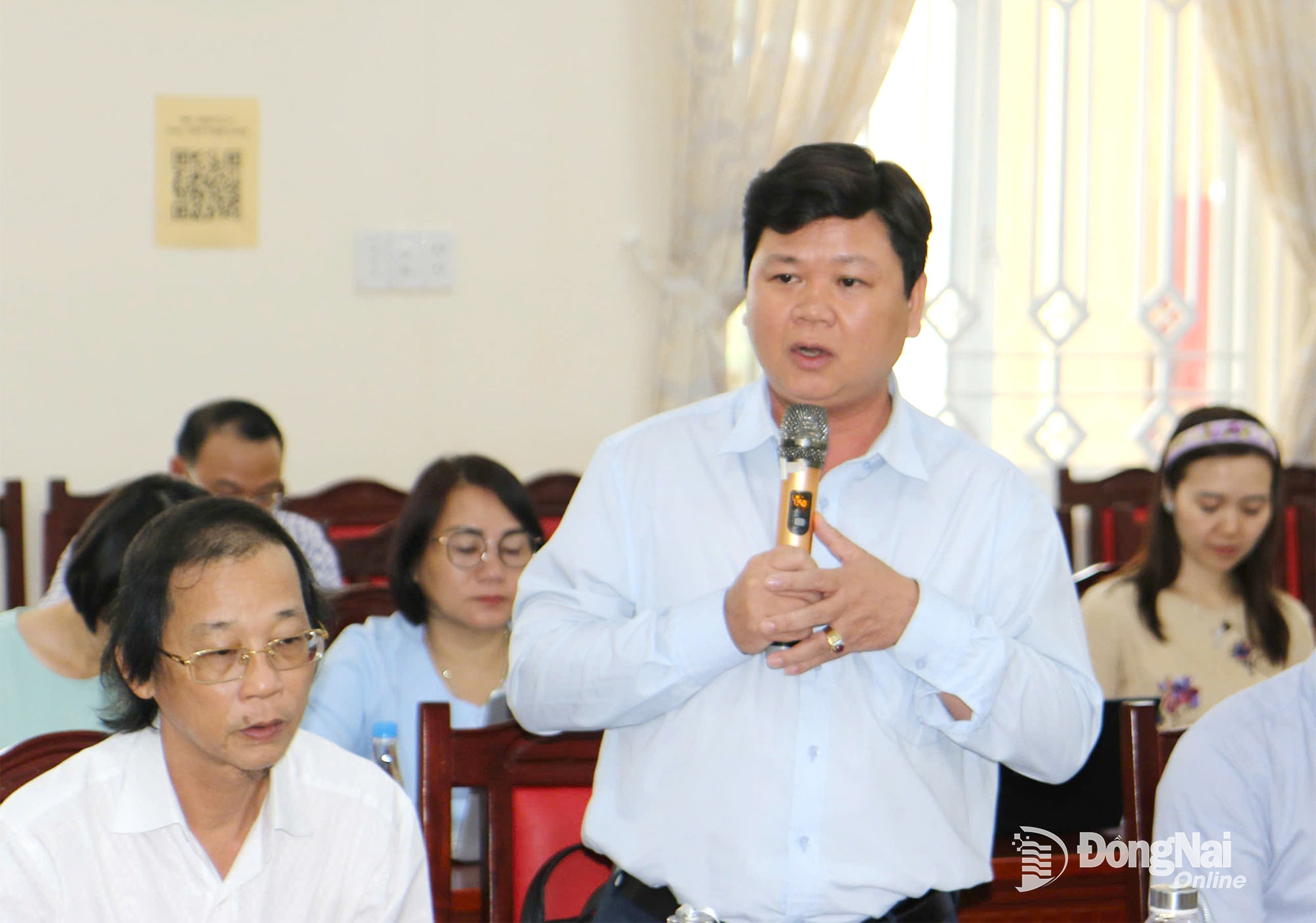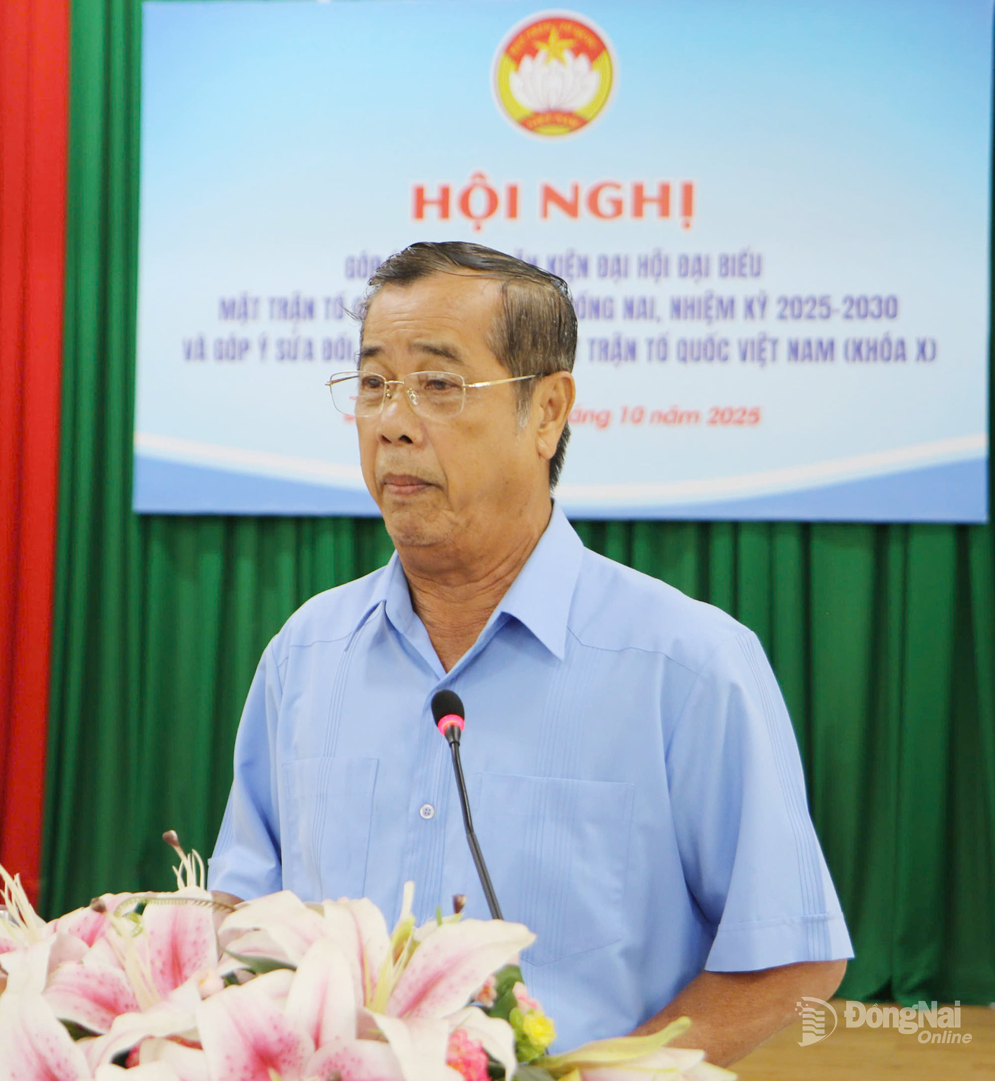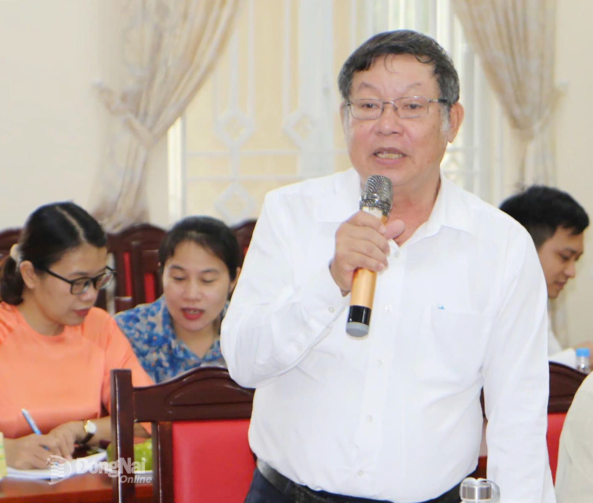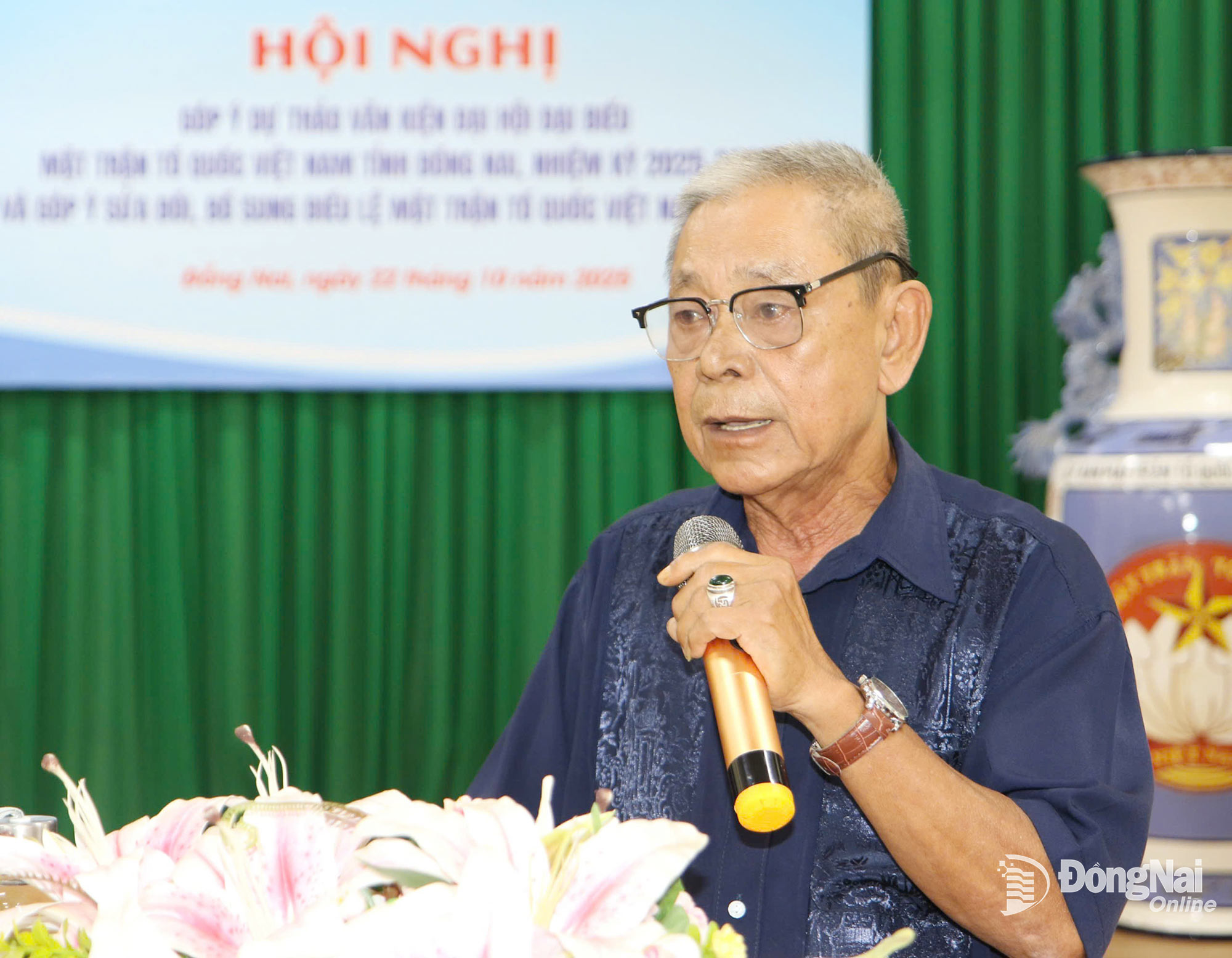 | Nguyên Phó Chủ tịch Ủy ban MTTQ Việt Nam tỉnh Đồng Nai (cũ) Nguyễn Văn Dũng đóng góp ý kiến vào dự thảo văn kiện. Ảnh: Văn Truyên |