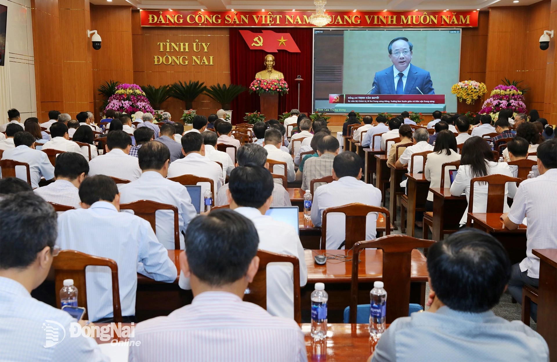 Tham dự hội nghị tại điểm cầu Tỉnh ủy Đồng Nai có các đồng chí: Tôn Ngọc Hạnh, Ủy viên Trung ương Đảng, Phó Bí thư Thường trực Tỉnh ủy, Chủ tịch HĐND tỉnh; Võ Tấn Đức, Phó Bí thư Tỉnh ủy; Thái Bảo, Phó Bí thư Tỉnh ủy, Trưởng ban Tổ chức Tỉnh ủy; các đồng chí nguyên lãnh đạo tỉnh; các đồng chí Ủy viên Ban Thường vụ Tỉnh ủy, nguyên Ủy viên Ban Thường vụ Tỉnh ủy; các đồng chí Ủy viên Ban Chấp hành Đảng bộ tỉnh; lãnh đạo các sở, ngành của tỉnh…