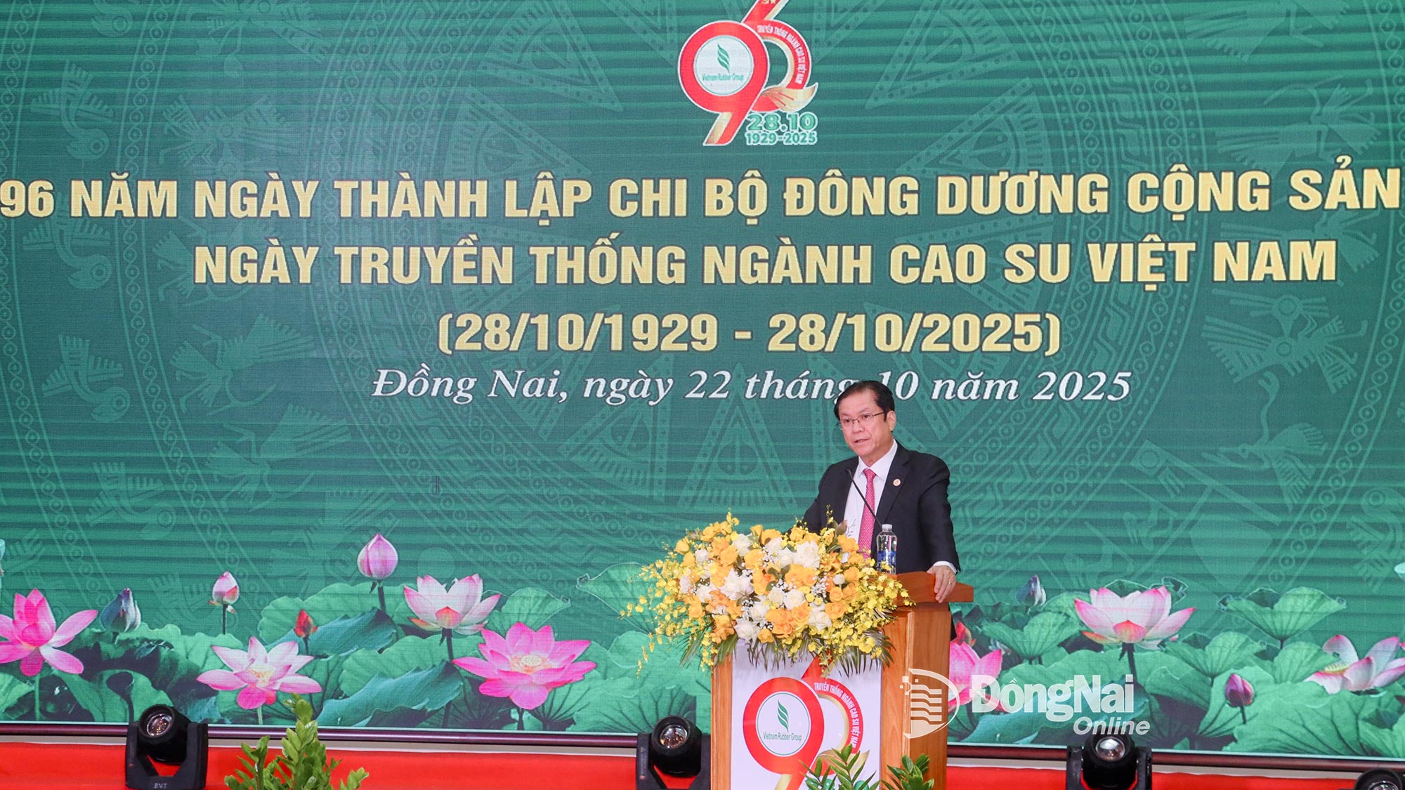 Trong không khí trang trọng của buổi lễ, các đại biểu đã cùng nhau ôn lại truyền thống 96 năm Ngày thành lập Chi bộ Đông Dương Cộng sản Đảng và truyền thống ngành Cao su Việt Nam. Vào đêm 28-10-1929, trên mảnh đất Phú Riềng, Chi bộ Đông Dương Cộng sản Đảng được thành lập, lãnh đạo phong trào đấu tranh của công nhân cao su làm nên Phú Riềng Đỏ anh hùng.