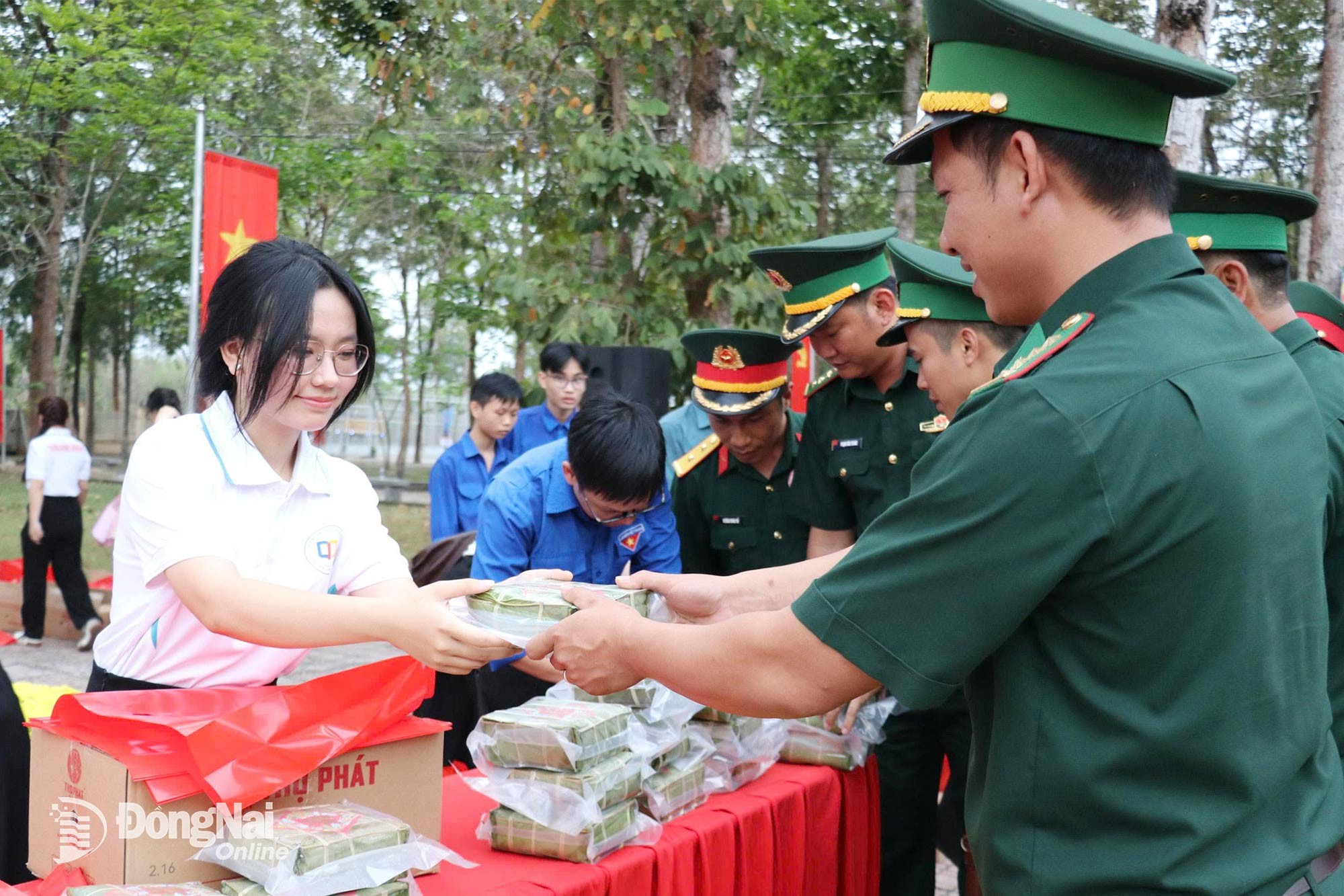 Các đoàn thể, Trường đại học Đồng Nai tặng bánh chưng cho các đồn biên phòng. Ảnh: CTV