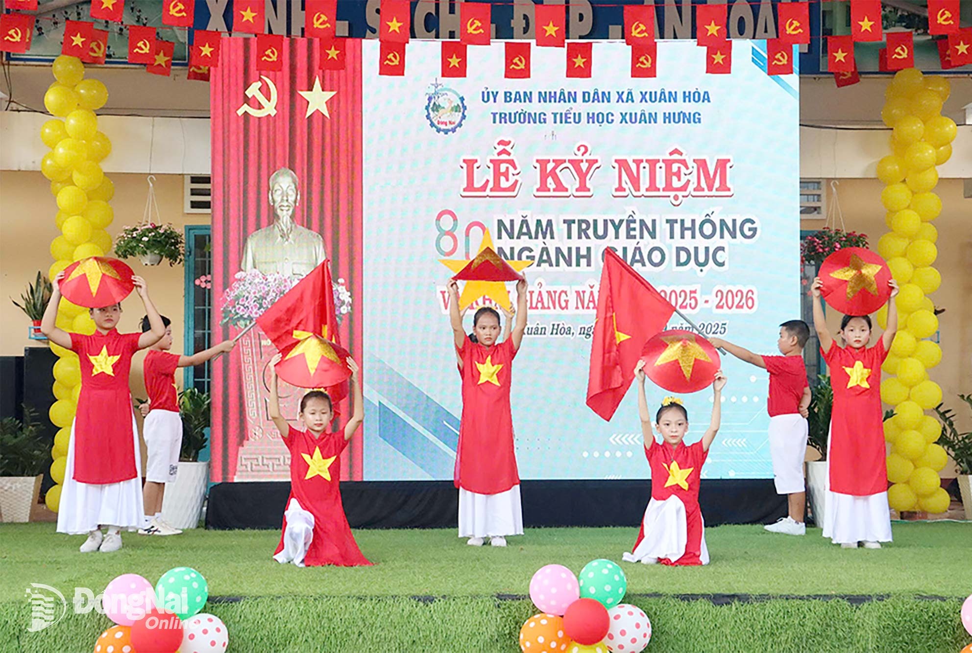 Tiết mục văn nghệ tại lễ khai giảng của Trường Tiểu học Xuân Hưng. Ảnh: Văn Đoàn