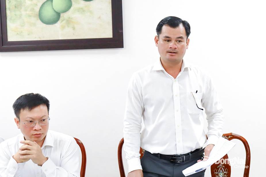 Phó Giám đốc Sở Nông nghiệp và Môi trường tỉnh Đồng Nai Diệp Trường Vũ báo cáo các thủ tục về đất đai. Ảnh: Hoàng Lộc
