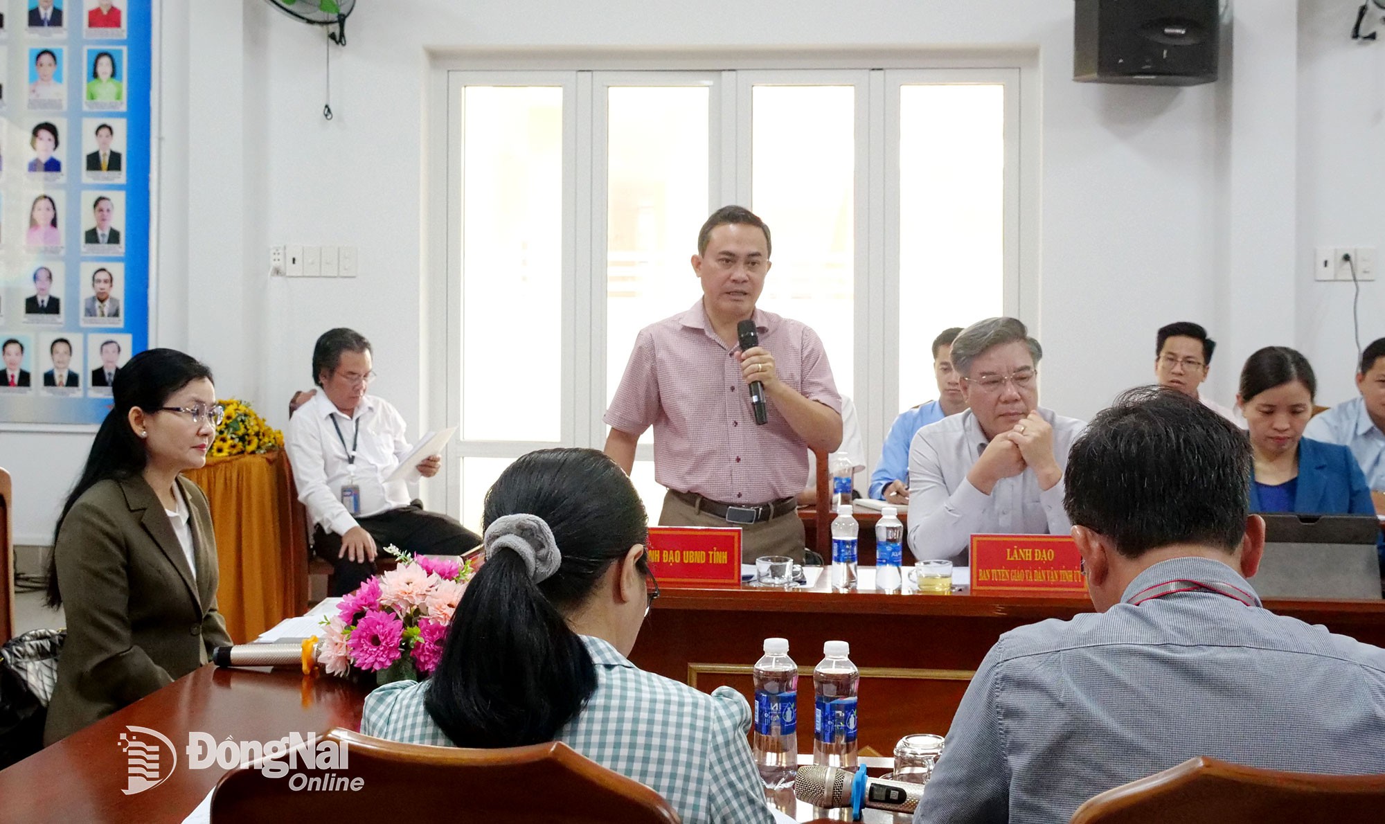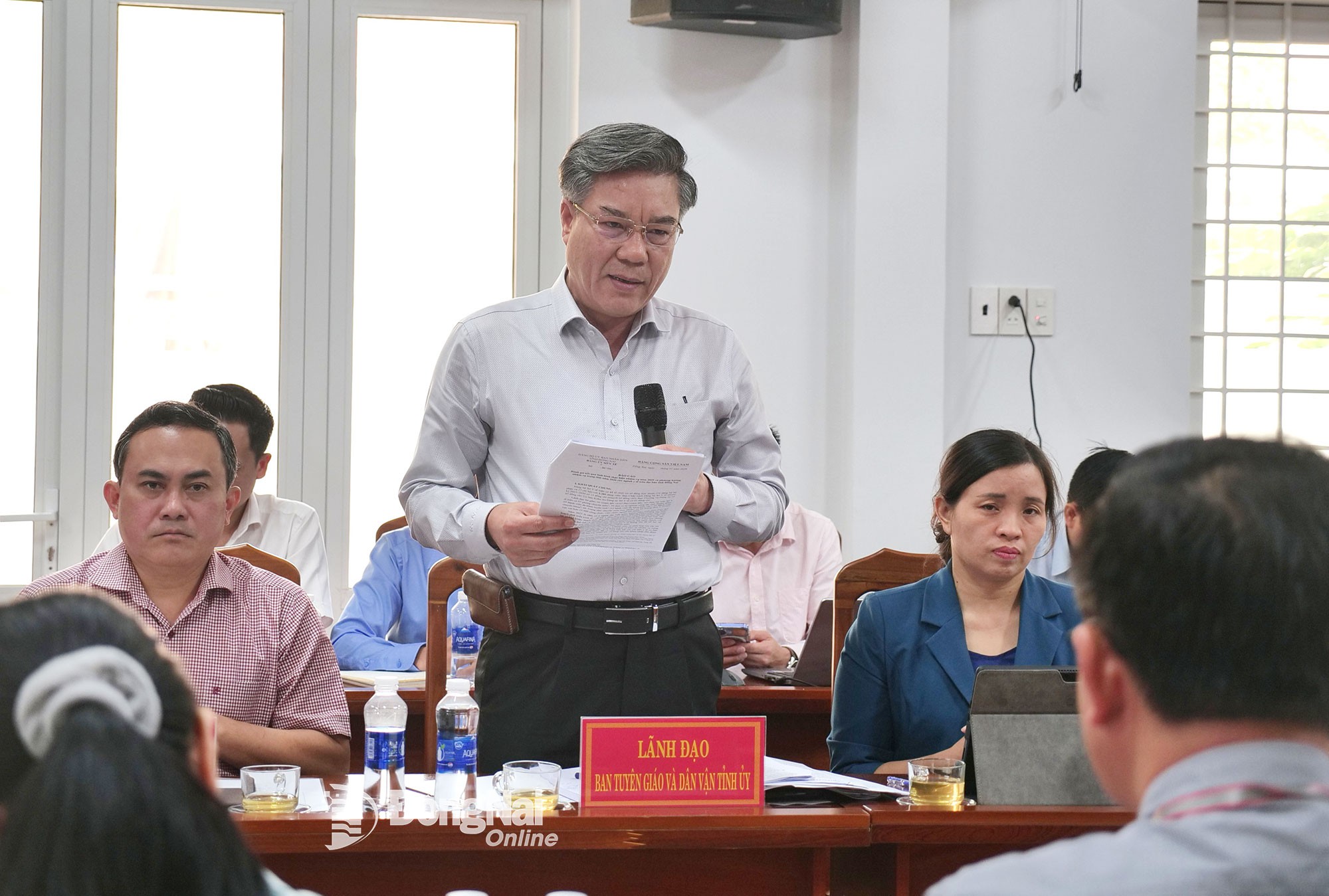 Ủy viên Ban Thường vụ Tỉnh ủy, Trưởng ban Tuyên giáo và Dân vận Tỉnh ủy Đồng Nai Dương Minh Dũng phát biểu tại buổi làm việc. Ảnh: Hạnh Dung