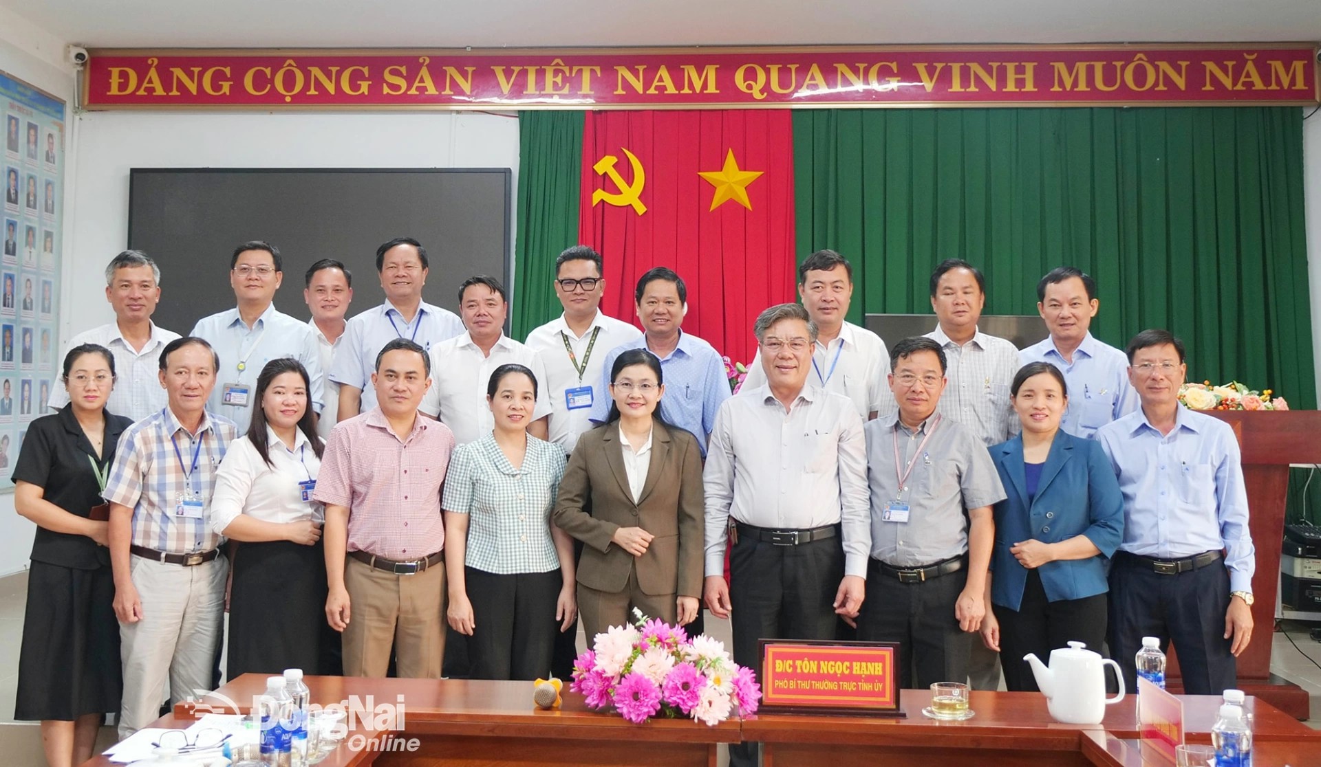 Đoàn công tác của Tỉnh ủy chụp hình lưu niệm cùng ban lãnh đạo Sở Y tế và các đơn vị trực thuộc ngành y tế Đồng Nai.