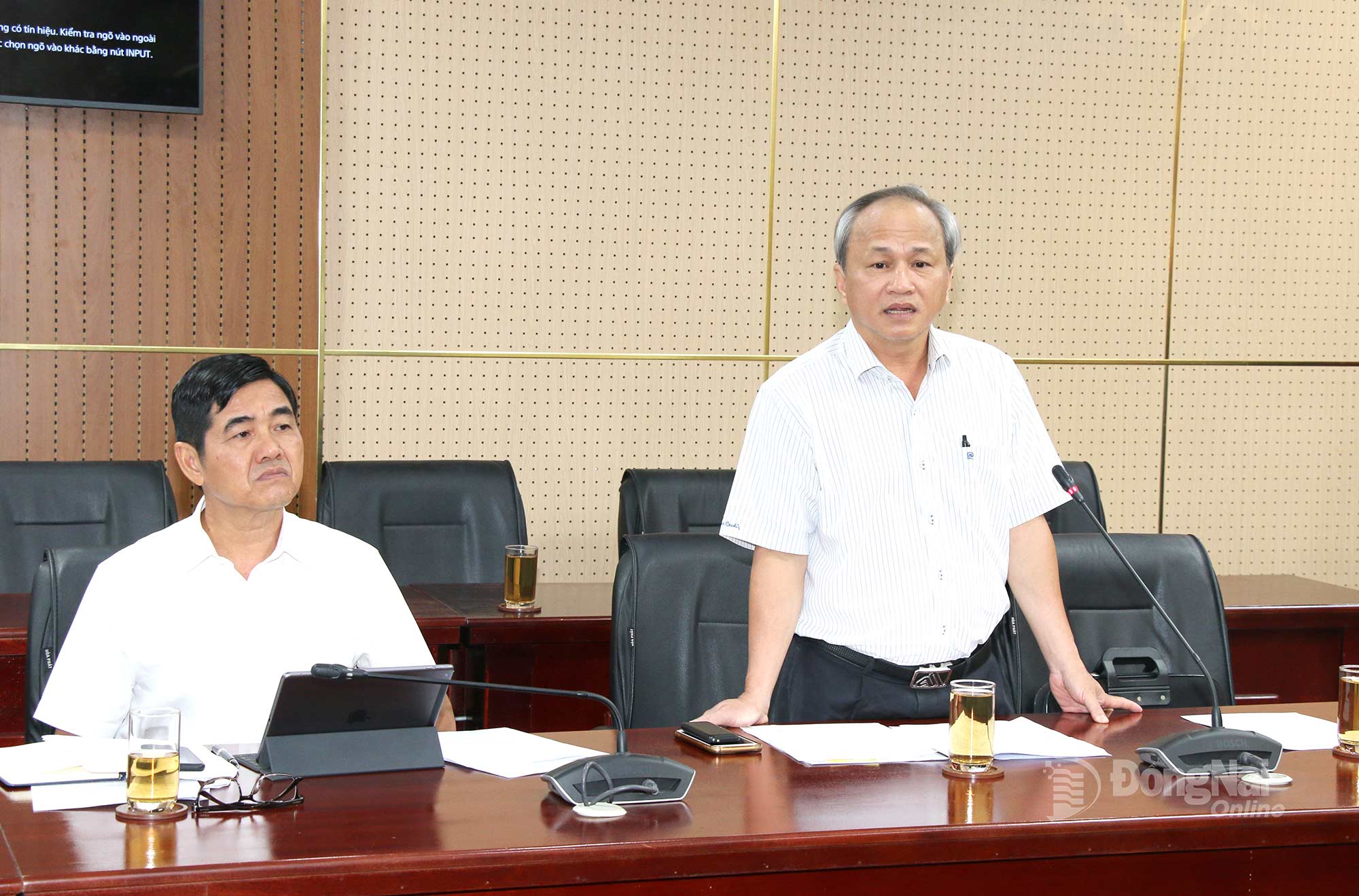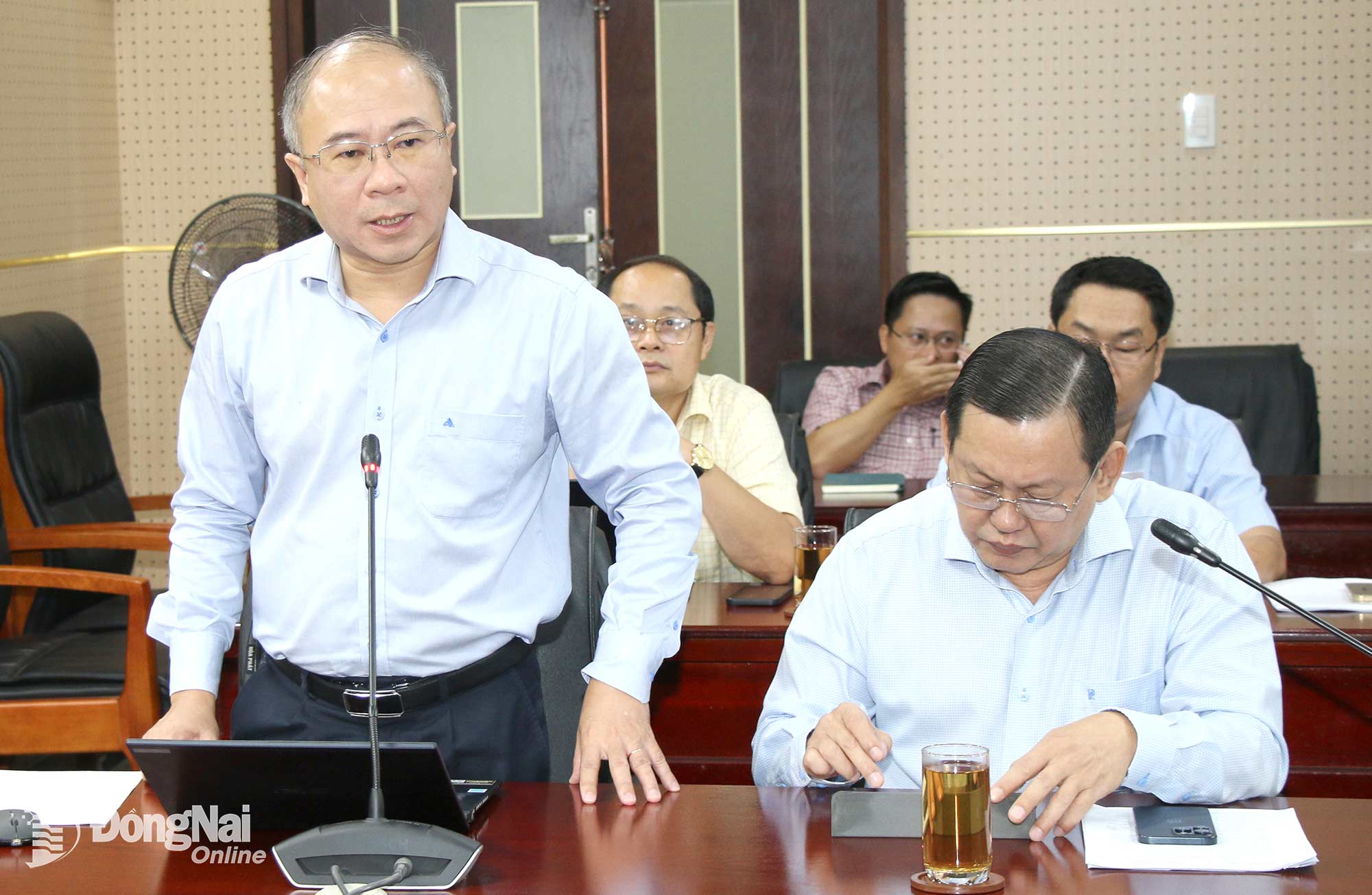 | Lãnh đạo Sở Khoa học và Công nghệ tỉnh Đồng Nai báo cáo tình hình giải ngân kinh phí lĩnh vực khoa học, công nghệ, đổi mới sáng tạo và chuyển đổi số của tỉnh. Ảnh: Hải Quân |
