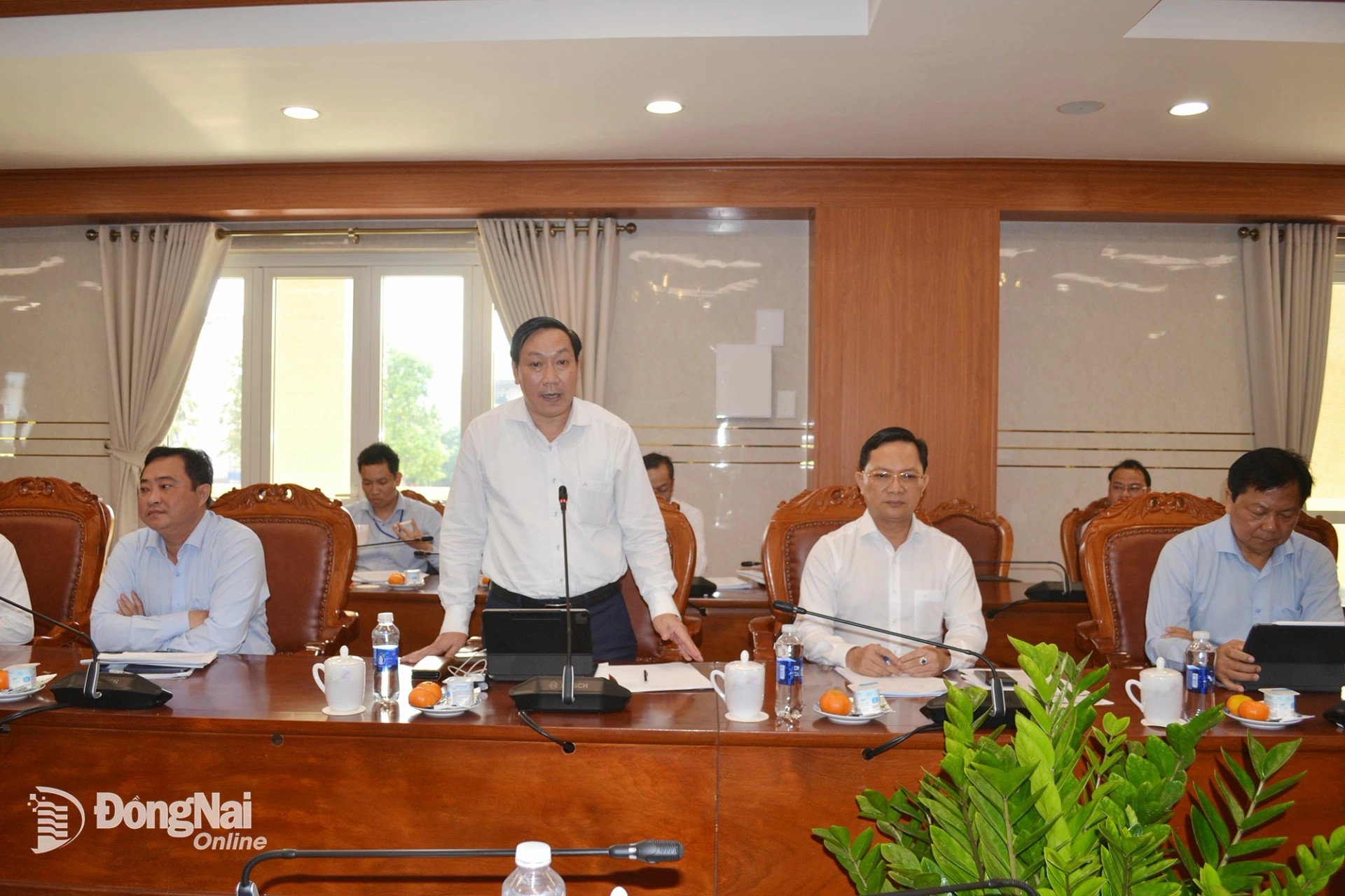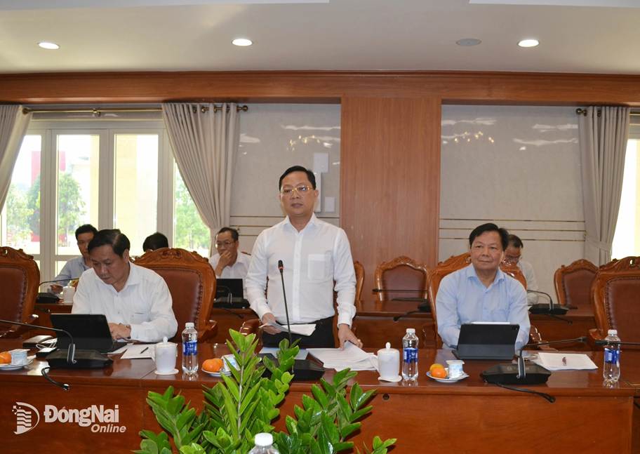 Đồng chí Tôn Ngọc Hạnh, Ủy viên dự khuyết Trung ương Đảng, Phó Bí thư Thường trực Tỉnh ủy, Chủ tịch HĐND tỉnh Đồng Nai phát biểu tại cuộc họp. Ảnh: Phương Hằng
