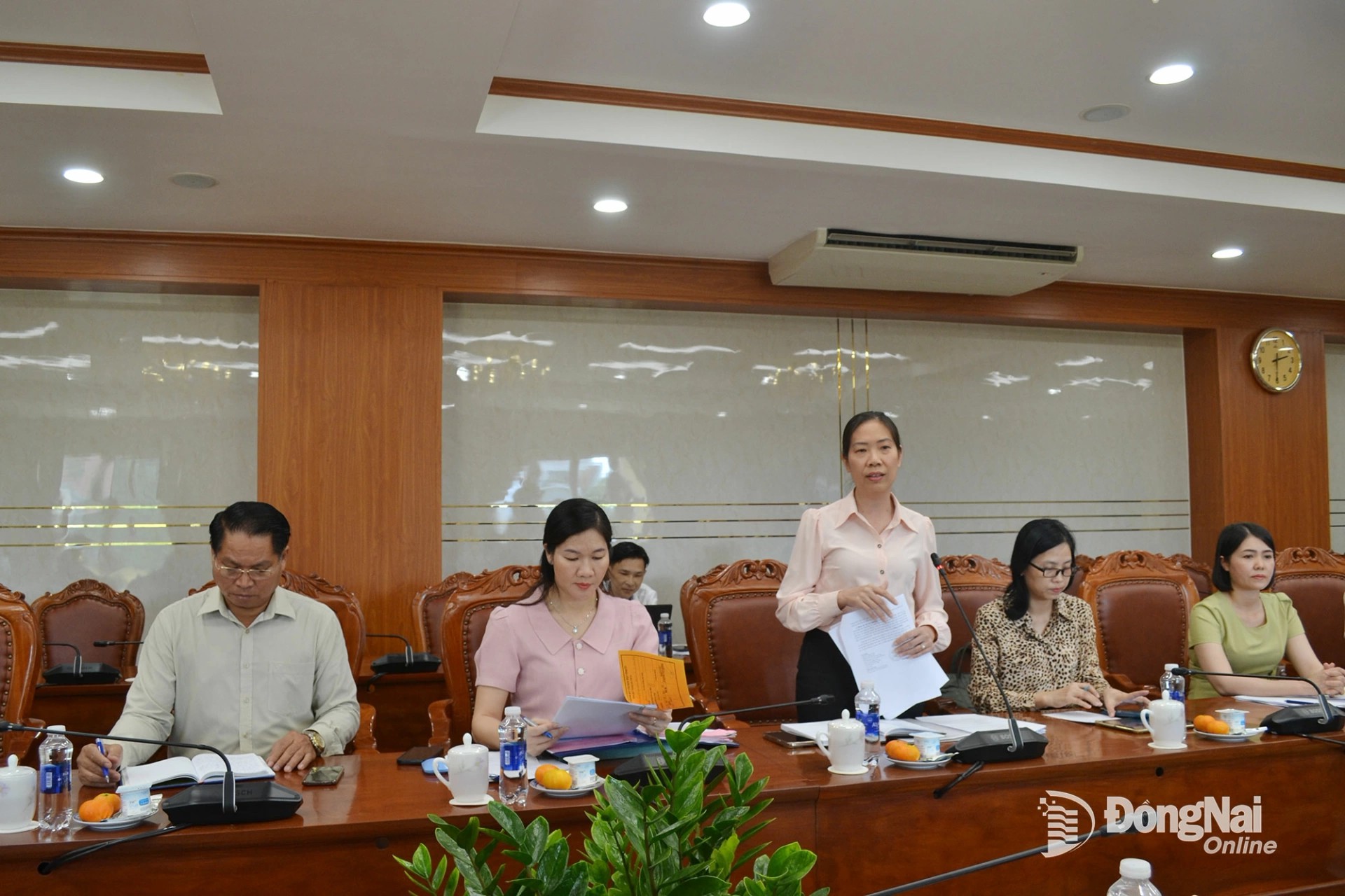Tỉnh ủy viên, Phó Trưởng ban Thường trực Ban Tổ chức Tỉnh ủy Đồng Nai Bùi Thị Yến phát biểu tại cuộc họp. Ảnh: Phương Hằng