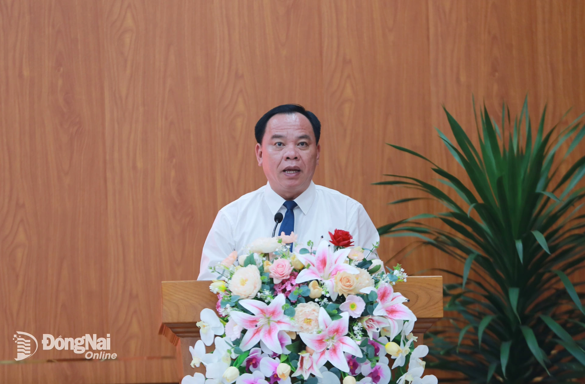 | Đồng chí Tôn Ngọc Hạnh, Ủy viên dự khuyết Trung ương Đảng, Phó Bí thư Thường trực Tỉnh ủy, Chủ tịch HĐND tỉnh Đồng Nai phát biểu chỉ đạo tại hội nghị. Ảnh: Huy Anh |