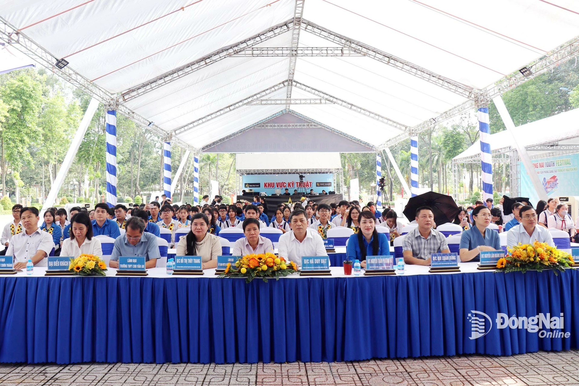 Phó Bí thư Tỉnh Đoàn Nguyễn Trần Phương Hà, đại diện lãnh đạo Sở Giáo dục và Đào tạo, phường Chơn Thành và các cơ quan, đơn vị, trường học, đoàn viên, thanh niên tham dự chương trình.