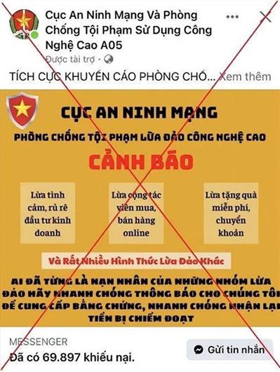 Thời gian qua, trên mạng xã hội Facebook xuất hiện một số trang giả mạo các Cục nghiệp vụ thuộc Bộ Công an như: “Cục An ninh mạng”, “Cục An ninh mạng và phòng chống tội phạm sử dụng công nghệ cao”.v.v… Các trang này đưa thông tin khuyến cáo người dân về các thủ đoạn lừa đảo trực tuyến và biện pháp phòng chống. Đồng thời cung cấp các dịch vụ pháp lý hỗ trợ công dân như tư vấn lấy lại tiền lừa đảo, hỗ trợ xử lý các vụ bị lừa đảo chiếm đoạt tài sản. Nhiều người dân khi truy cập vào các trang mạng này không phân biệt được đâu là thông tin chính thức, thậm chí có người đã tiếp tục trở thành nạn nhân của tội phạm lừa đảo khi nghe, làm theo hướng dẫn trên các trang giả mạo này.