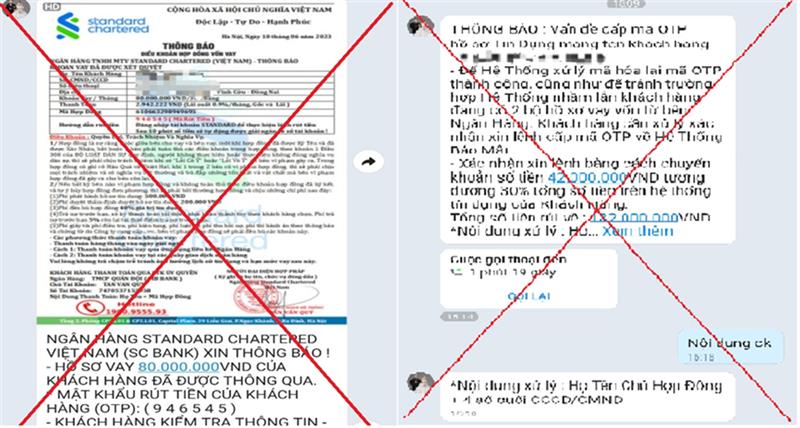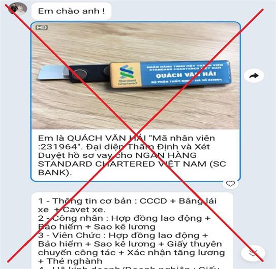 Bằng hình thức gọi điện và hướng dẫn các thủ tục online, anh N.P.H.(ngụ huyện Vĩnh Cửu, tỉnh Đồng Nai) vừa bị một nhóm đối tượng mời vay tiền bằng việc cài đặt app Standard Chartered. Sau quá trình thẩm định giấy tờ qua zalo, anh H. được vay 80 triệu đồng, trong quá trình “giải ngân giả”, nhóm đối tượng trên thông báo anh bị sai tên họ nên yêu cầu phải chuyển khoản cho bên app để cập nhật lại số tài khoản; tuy nhiên, thao tác lại và chuyển khoản nhiều lần với tổng số tiền chuyển cho bên cho vay hơn 700 triệu đồng, anh H. vẫn không lấy được số tiền đã chuyển và vẫn không được “giải ngân”.