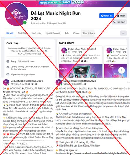 Cụ thể, trang fanpage này đã sử sụng trái phép thông tin và hình ảnh của Giải chạy bộ âm nhạc Dalat Music Night Run 2024 thuộc Công ty Cổ phần Truyền thông Nexus đã tổ chức vào tháng 6/2024 tại TP. Đà Lạt, gắn thông tin sai lệch, quảng bá sẽ tiếp tục tổ chức giải chạy mới từ ngày 16 – 17 tháng 11 năm 2024 để lấy lòng tin của người dùng mạng xã hội.
