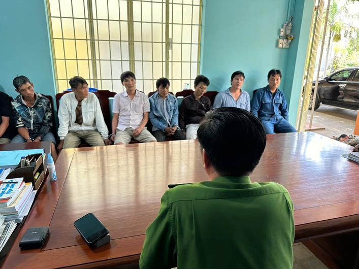 Công an thành phố Long Khánh làm việc với các đối tượng trong vụ án ma túy