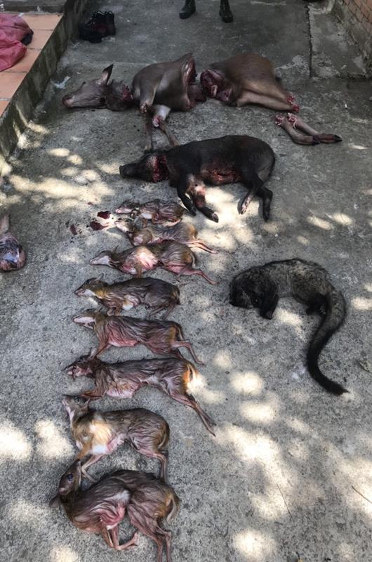 Cụ thể, vào khoảng 23 giờ ngày 1-3-2023, tổ tuần tra của Trạm kiểm lâm cơ động Vườn quốc gia Cát Tiên phối hợp với Trạm kiểm lâm Núi Tượng và Trạm kiểm lâm Tà Lài tiến hành phối hợp tuần tra, kiểm soát bảo vệ rừng theo kế hoạch đề ra. Đến khoảng 2 giờ ngày 2-3-2023, khi lực lượng tuần tra tại địa phận tiểu khu 42 Vườn quốc gia Cát Tiên (thuộc địa phận xã Đak Lua, H.Tân Phú) phát hiện nhóm đối tượng gồm: Trần Văn Tuấn (34 tuổi); Trần Văn Trường (36 tuổi); Nguyễn Văn Lộc (45 tuổi), cùng ngụ ấp 1, xã Nam Cát Tiên (H.Tân Phú); Đinh Văn Hùng, (40 tuổi, ngụ thôn 3, xã Ma Đa Guôi, H.Đạ Huoai, tỉnh Lâm Đồng); Trương Văn Danh (35 tuổi, ngụ ấp 1, xã Núi Tượng, H.Tân Phú) và 3 đối tượng chưa rõ nhân thân, lai lịch đang có hành vi săn bắt, vận chuyển trái phép động vật hoang dã.
