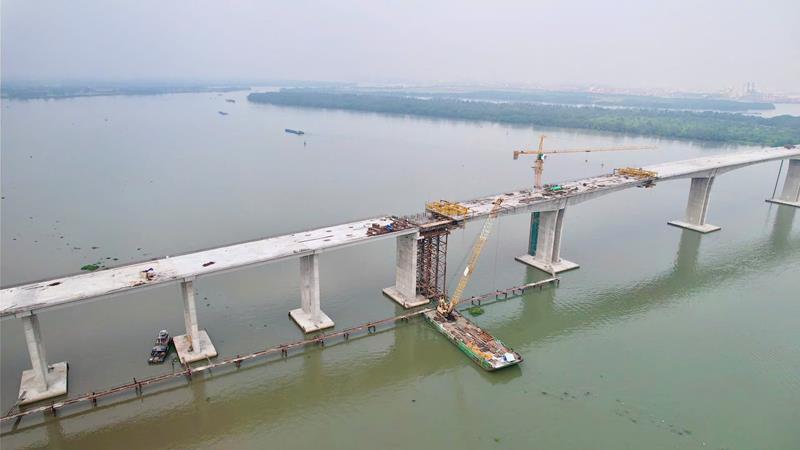 Thi công cầu Nhơn Trạch, hạng mục thuộc dự án thành phần 1A, Đường vành đai 3, đoạn Tân Vạn - Nhơn Trạch