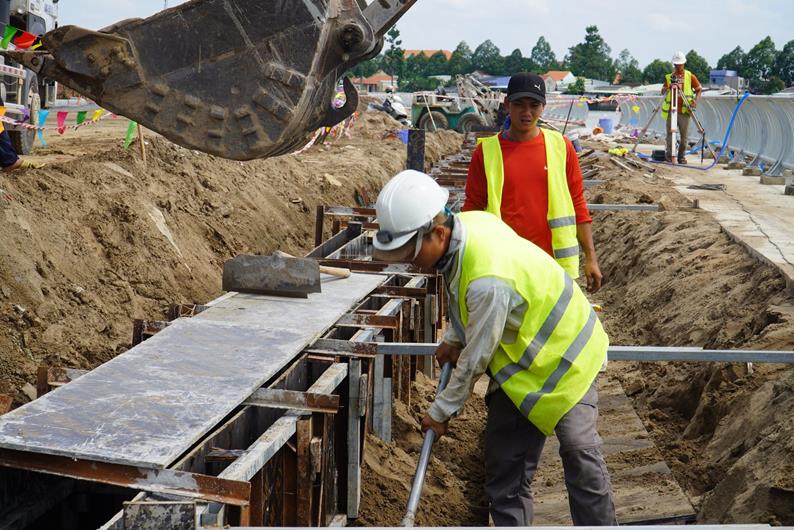 Công nhân thi công Dự án đường ven sông Đồng Nai (đoạn từ cầu Hóa An đến giáp ranh huyện Vĩnh Cửu).